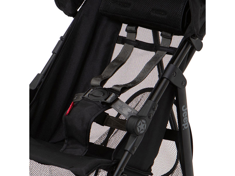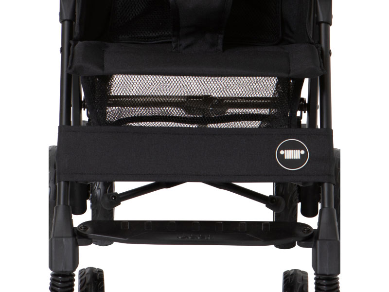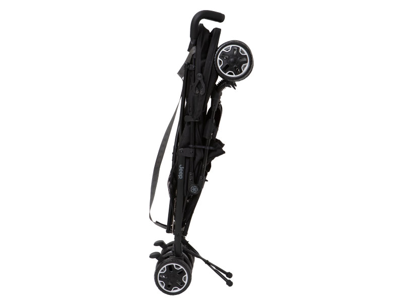 足回りがタフなジープ車のようにクラス最大級のタイヤ&3Dサスペンションを搭載することで安定走行に優れたベビーカー。折りたためばA4サイズのスペースに自立するコンパクトさも特徴。