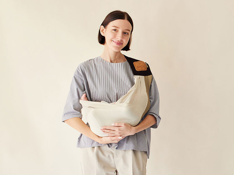 新生児の時から使って安心な丸い底のキャリーミー!は赤ちゃんのCカーブの抱っこを優しくカバー。産院退院時からおうちの中まで、さっと取り出しさっと抱っこ。赤ちゃんはすぐに寝ちゃいます!