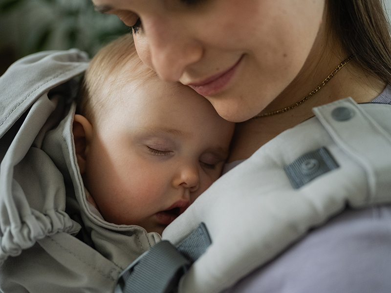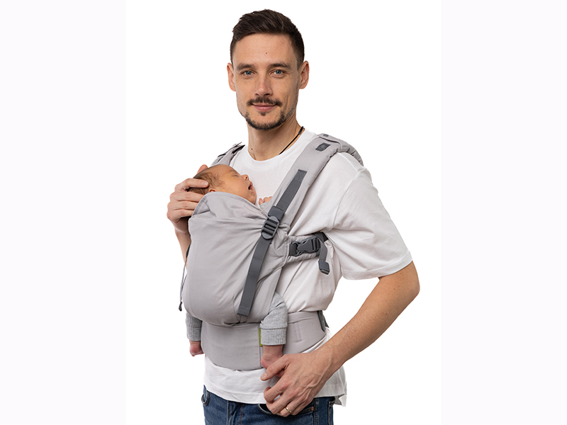 抱っこひもの高さやシートの幅を無段階で調節できるから、どんな体型の人にもぴったりフィット。赤ちゃんのサイズにもストラップ調節だけで合わせることができ、0歳から大きくなるまで、包むようなやさしい抱っこが可能。