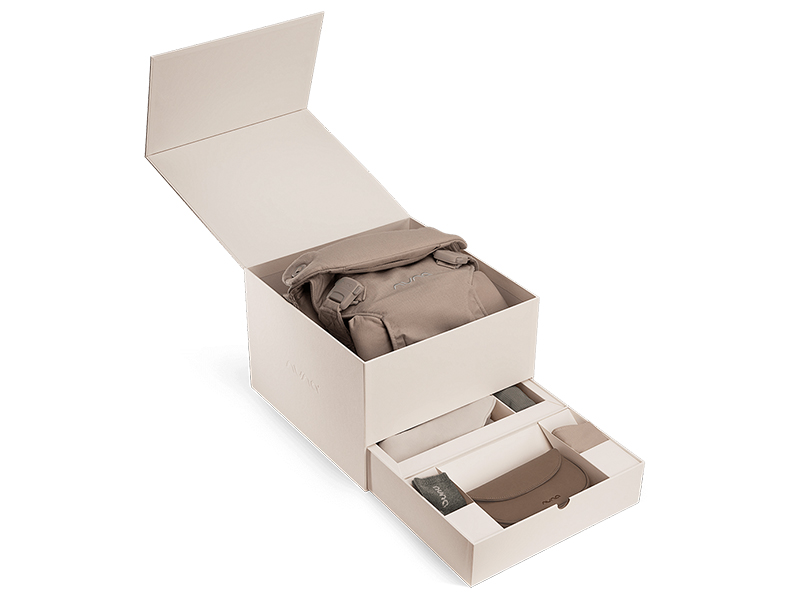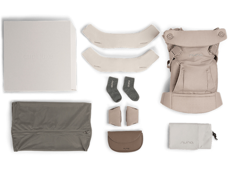 マグネット式バックルで乗せ降ろしラクラク。本体には柔らかく保湿性のあるカシミヤ・シルク混紡素材を採用。専用のランドリーバッグやスタイなど充実の付属品がセットになった一品。贈り物にもおすすめ。